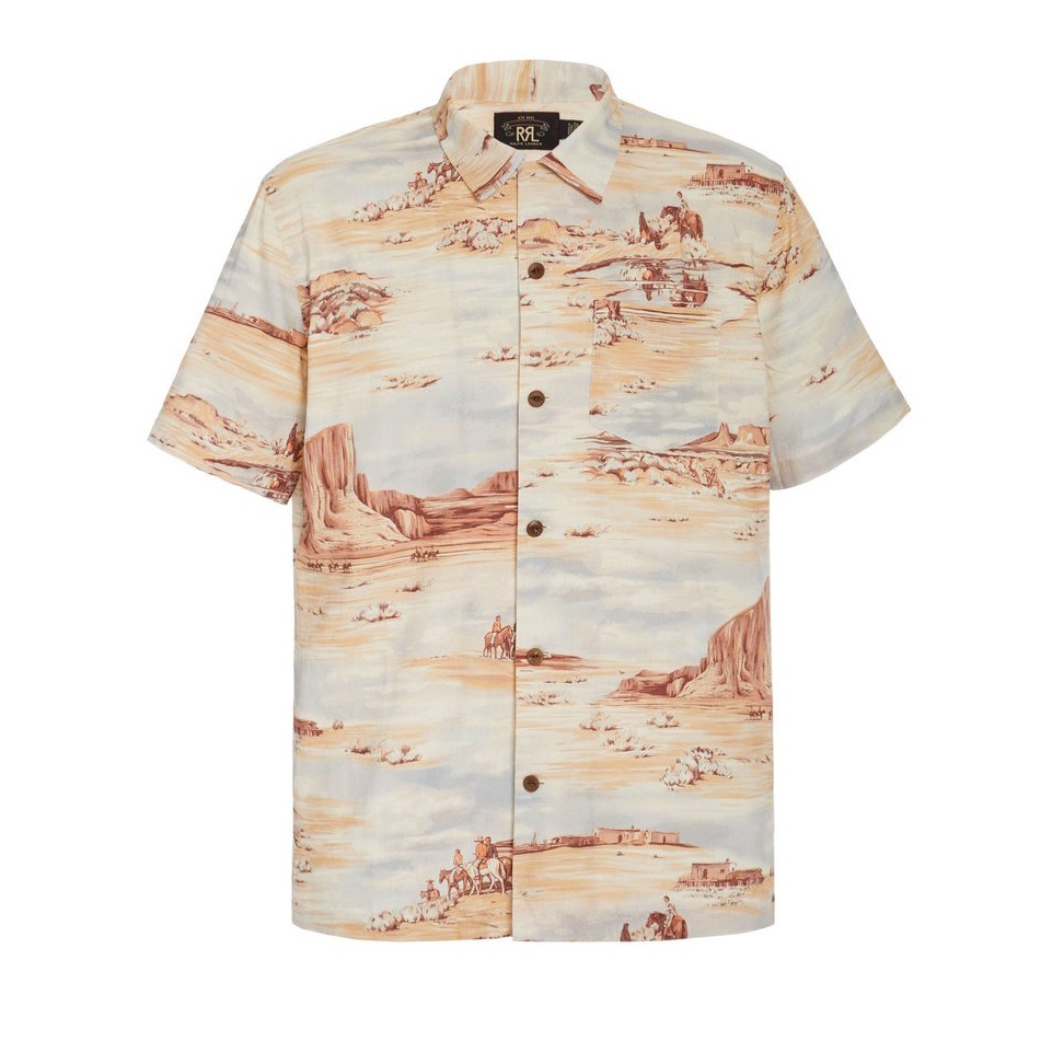 Given the price of the RRL’s shirts, I promised myself that I wouldn’t buy this scenic-print viscose-blend shirt as well. But imagine how it would look with faded blue jeans, a vintage denim Lee trucker jacket, and some suede roper boots. Or any outfit in that old “California Sunshine and Noir” post.
